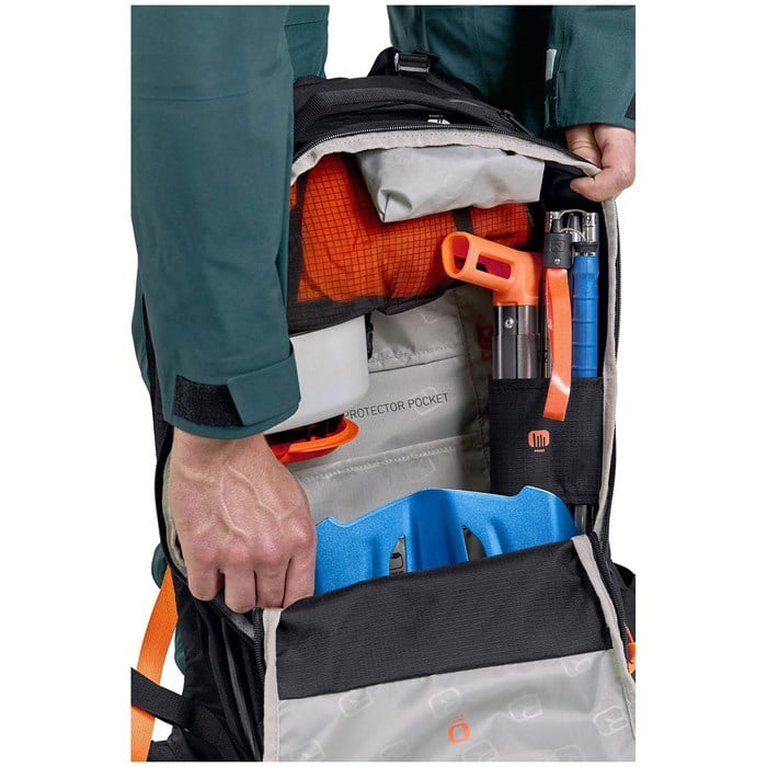 No Airbag Included – This is a separate stowaway bag that is compatible with all AVABAG LiTRIC FREERIDE and AVABAG LiTRIC TOUR BASE units in the regular variant (without S), and has been specially designed for freeriding. It can be easily and almost invisibly zipped to the BASE.