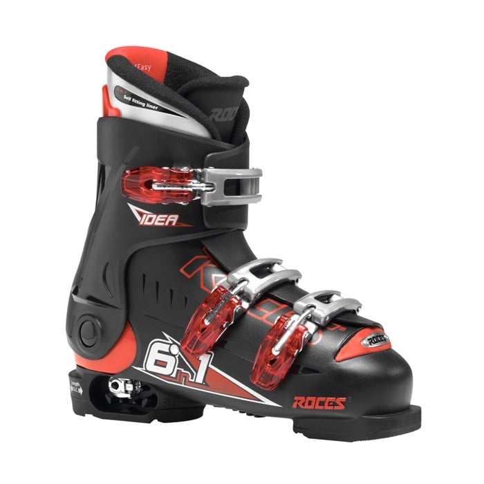 Roces Idea Adjustable Ski Boots - Youth (19-22) 2012: Ideal for a growing skier, the Roces Idea Adjustable Ski Boots grow with your child thanks to the patented “6 in 1” device. Easily adjustable, not only in length, the system allows for the adjustment in cuff height and width, utilizing micro-adjustable buckles.