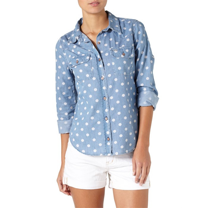 Quiksilver Third Bay Button Down Shirt - Women's: We love everything about this shirt. Denim and polka-dots for days! You can wear denim on denim, polka-dots on polka-dots, or do something crazy and wear denim polka-dots on denim polka-dots.