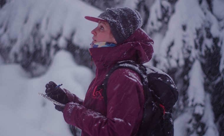 Sandy Ward is an Indigenous Snowboarder who is part of Indigenous Women Outdoors. Sandy dedicates her time to helping Indigenous women get outdoors and access the land, offering healing from generational trauma. In Fabric, Sandy takes Spencer onto her traditional territory of to help her find her voice as a leader.