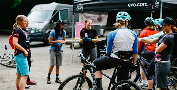 There’s something about riding a bike that makes you feel like a kid again. It’s freeing, invigorating, challenging, and just plain fun. It can also be scary and hard, whether you’re trying out mountain biking for the first time, or have been riding for years.  As women in the bike world, we embrace all of these realities and are excited to help other women progress in their riding and participate in the biking community. I’d bet that if you ask most women (though not all by any means), their experience is less about the perfect bike and more about the community we ride with, the beautiful view, the gear enabling the feeling of accomplishment and silly fun of it. Read on to find resources to get out there, connect with other bikers, and explore gear to push yourself to new heights.