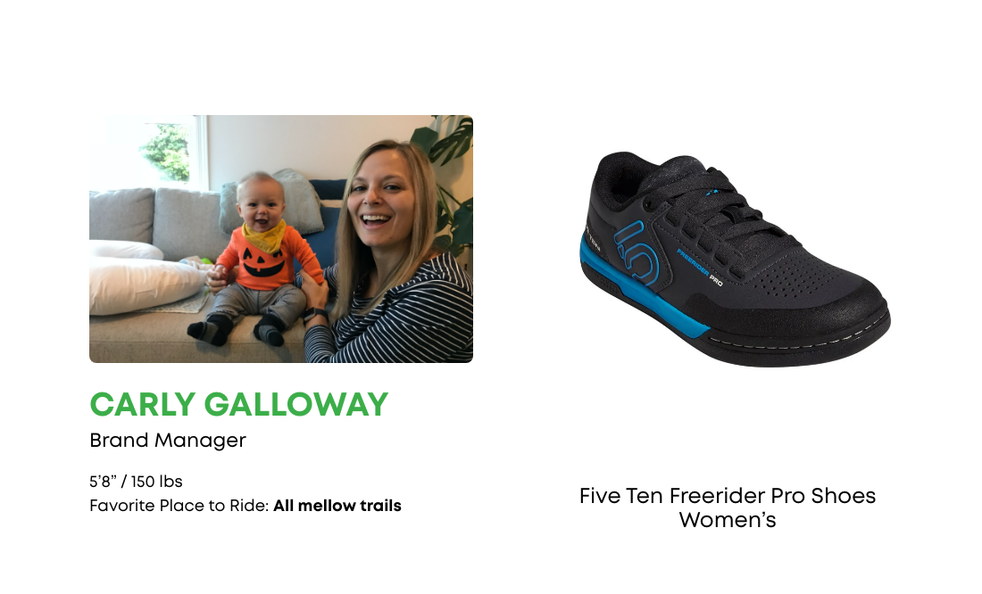 I got back into biking shortly after the birth of my son in 2017 when I was looking for a way to get back in shape after pregnancy. I've never felt confident enough on a bike to use clipless pedals but wanted a sturdy shoe that would give me good traction. The Five Ten Freerider Pro shoes are perfect! The grippy rubber soles feel secure and I don't have any trouble with slipping off my pedals even when it's wet and muddy. The structure of the shoe is firm but still allows for plenty of mobility. I was a little skeptical at first as to why someone would need a mountain bike-specific shoe but after riding with the Freerider Pro I would never go back.
