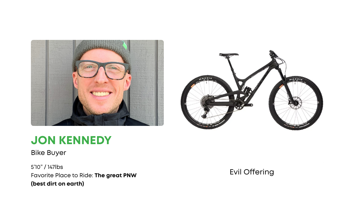 I am currently riding the Evil Offering X01. What I love about the Offering is its playfulness on trail. The DELTA linkage system provides an amazing pedaling/climbing platform while still being progressive enough to never really feel like your sitting too low or ever using too much travel. I have mine set up with a 150mm travel fork and have not felt that I’ve reached its limit yet. This is also the first Evil to move towards the steeper (for Evil) 76-degree effective seat tube angle. The total package here creates a fully efficient up/down machine that can handle anything you can throw at it… and much more. As far as bikes go, I call this the “party bike”. To round out the podium of current bikes I am really into, I’d add the Santa Cruz Hightower and the Yeti SB130. All of these are efficient and fun rigs and you honestly cannot go wrong with any of them.