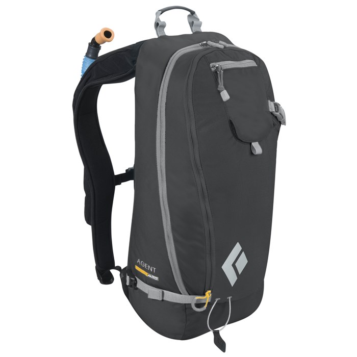 Black Diamond Agent Avalung M/L Pack 2012 – Big brother to the Black Diamond Bandit pack, the Black Diamond Agent AvaLung provides the same streamlined avy tool organization with additional carrying capacity for storing backcountry essentials on longer outings. In the event of a slide, the built-in AvaLung increases your chance of survival and the zippered front panel provides quick access to your shovel and probe. Black Diamond also added a diagonal ski-carry cable to secure your skis on steep ridgelines and boot packs.
