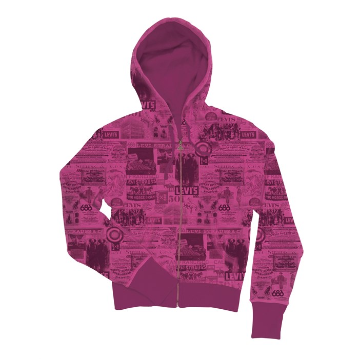 686 Times Levi's Vintage Zip Hoody - Women's: The Times Levi’s Vintage Zip Hoody by 686 features a collage of vintage Levi’s text and images.