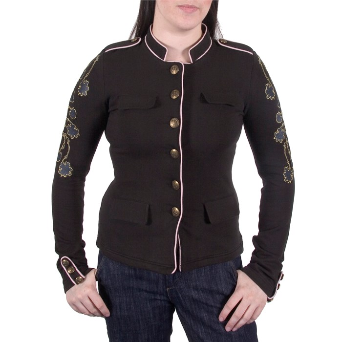 One would think that you can’t mix things like the uniforms and flowers, but Gentle Fawn went ahead and did it really well. The Brass jacket is a military style coat with large ornate brass buttons up the front and stand up collar. The extremely comfortable black cotton fabric is set off with pink piping. The details truly make this jacket amazing including the shoulder epaulettes, front pockets, bottom sleeve detail and of course the unique and fabulous floral style embroidery covering the top half of the sleeves.