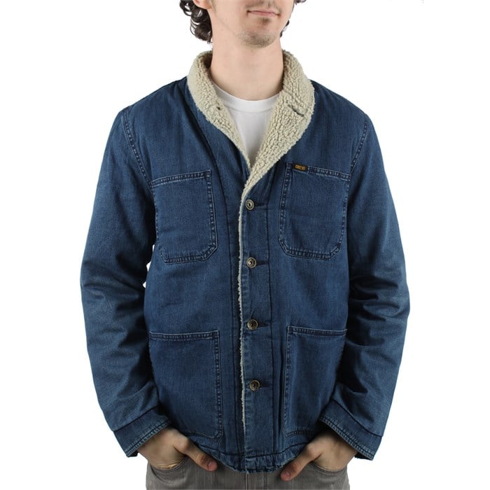 Obey Clothing Cobbler Jacket 2011: A lot of denim jackets aren’t warm. Not so with the Obey Clothing Cobbler Jacket. Poly-filled lining and a sherpa collar keep you toasty when it gets chilly and metal buttons, Obey labels, and fading give style to a heavy denim work jacket.