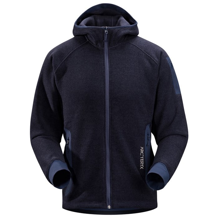 Arc'teryx Strato Zip Hoodie: The distinctively textured Arc’teryx Strato Zip Hoodie is a technical snow sports layering piece, features low profile stretch-woven cuffs that shed snow and reduce layering bulk under shells and gloves. Polartec® Thermal Pro® Cobble insulates and breathes during activity, and a laminated hoodie brim maintains shape and improves visibility.