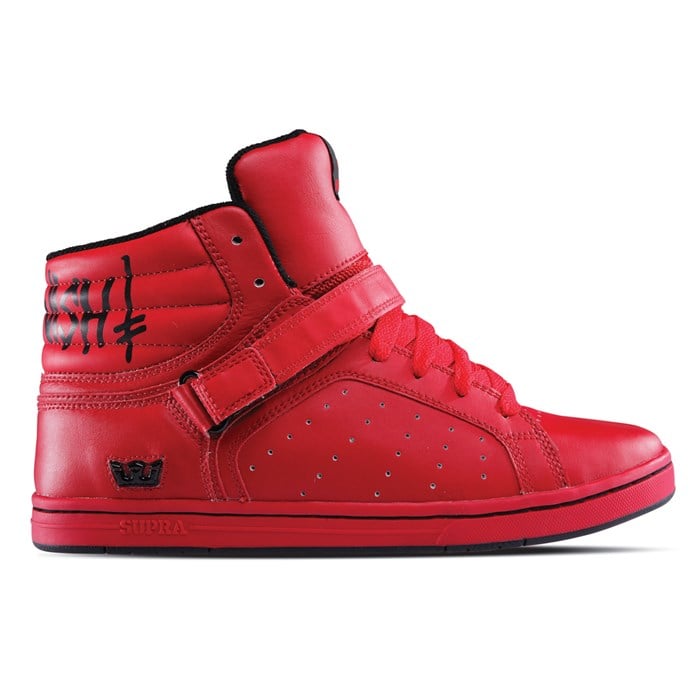 Supra Suprano High - Jim Greco Pro Shoe: Rock n Roll anybody? Jim Greco would say yes. Supra introduces the Suprano High, which is Jim Greco's new pro model. The Suprano High has extra heel protection so you can jump down the same things Greco would skate. Supra's Suprano High offers you a velcro strap to give you a little more support.