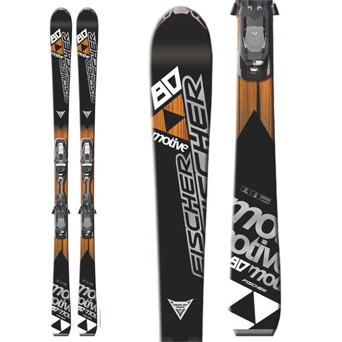 Fischer Motive 80 Powerrail Skis + RSX 12 Powerrail Bindings 2011: Any time, any place, anywhere! With an 80mm waist the Fischer Motive 80 Powerrail Skis offer an extremely high fun factor at any speed. Further features: Sandwich Sidewall Construction with a wood core, Dynamic Grip Control and Powerrail – wider and lower for excellent power transfer even with broad skis.