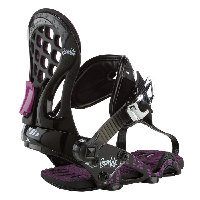 Ride Bandita Contraband Snowboard Bindings - Women's 2011: Ladies, the Ride Bandita Contraband™ Snowboard Binding is HOT. Not hot like bought out of the back of a van hot, but a hot design for your riding pleasure. Built for freestyle ladies ready to rip, the Ride Bandita features the women’s LuxLite highback for premium flex and single ratchet technology with the ultra secure V-Strap™. Also kitted with the Wedgie 2.5 footbed and Urethane Rollbar™, these provide an added dose of comfort and boost of Ollie pop.