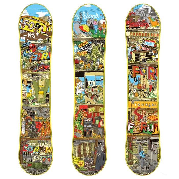 Forum Mini Youngblood Snowboard – Youth 2010: Most kid boards are made like toys, but Forum knows that tormented groms deserve more respect than that. The Mini Youngblood is made with big board construction so growing dudes can rip the same terrain as their brothers and not be left behind. The downsized decks include a full wood core for ollieing trashcans, a twin shape for hitting jumps with flat landings and a softer bias glass so junior can learn to nose press before his 10th birthday.