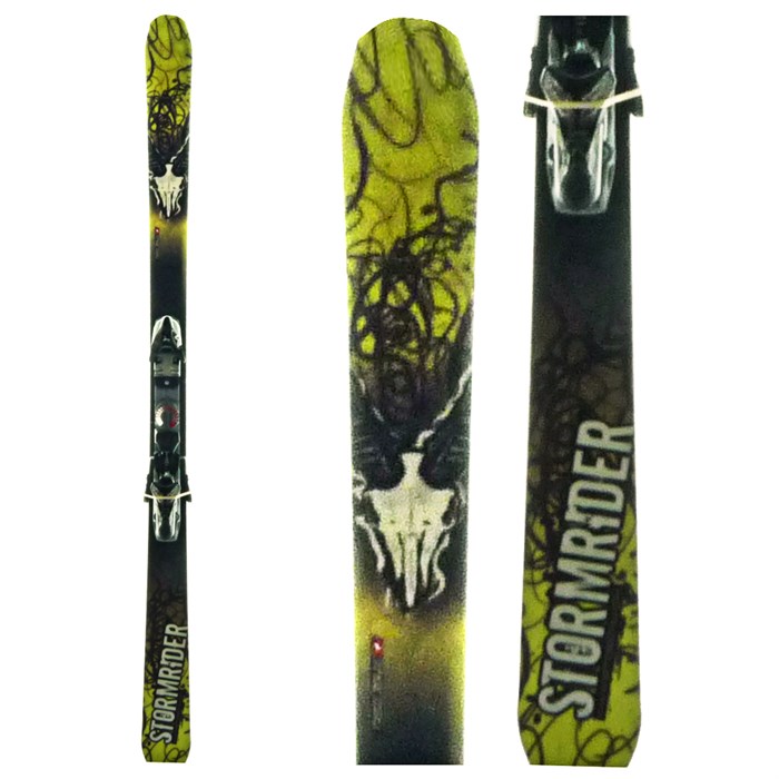 Stockli Stormrider XXXL Skis + Bindings - Used 2008 (skis): The Stormrider XXXL is billed as Stockli’s big-mountain, off-piste ski. At just under 90 mm at the waist, this ski is narrower than most big mountain sticks and it’s built for speed. There’s no doubt that the relatively stiff, directional, wood-core XXXL can handle aforementioned speed and, given the ski’s footprint, make long radius turns. Skiers who like the feeling of a race ski, and who tend to carve their turns no matter what the snow conditions will enjoy the XXXL.