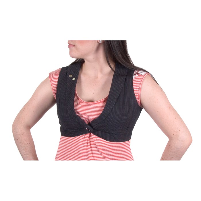 Buy, Sell, Trade! In this menswear inspired Wall Street Vest from Billabong, fit right in with the stock market crowd, but be much more fashionable than your average middle aged gray-haired broker. With its cropped style, feminine silhouette, welt pockets, pinstripe detail, back tab w/buckle, printed lining, and novelty buttons, you will be the most interesting thing to look at besides the ticker tape.