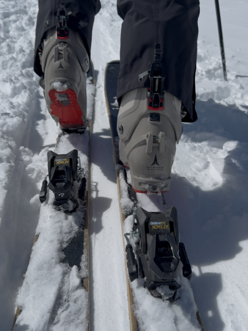 I first skied these on resort just to give them a feel along with the new Head Kore 106 (which by the way is an amazing whole new ski). No surprise but the Attack Hybrid 14 felt no different than a regular Attack 14. There is a bit more plate sticking out in front of the toe but this doesn't appear to create any additional lift, play, or dead spot.