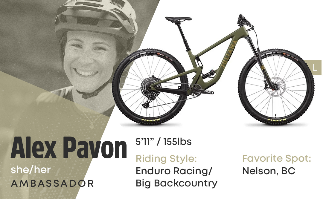 Juliana released the Maverick, the sister of the Santa Cruz Hightower, in 2019 and it became my instant favorite. I’ve always been a big 29er fan - I’ve had every version of the Joplin (Tallboy) that Juliana has made - so when Juliana finally released a long-travel, enduro-race-capable 29er, I was beyond excited. The Maverick was built to be 140mm rear travel and 150mm of front travel, but I’ve been running a 160mm Lyrik up front and made some modifications to the rear shock to give me about 145mm rear travel, which has given me a bit more confidence charging down gnarly tracks without compromising the pedal efficiency. The Maverick has served me well on all sorts of adventures, from the steep tech at EWS Whistler to all-day blind racing at Trans BC and Andes Pacifico and everything in between. The Maverick is quick, capable, versatile, stable, and loves to go fast. If you’re looking for a bike that can do anything and do it well, the Maverick is your girl.