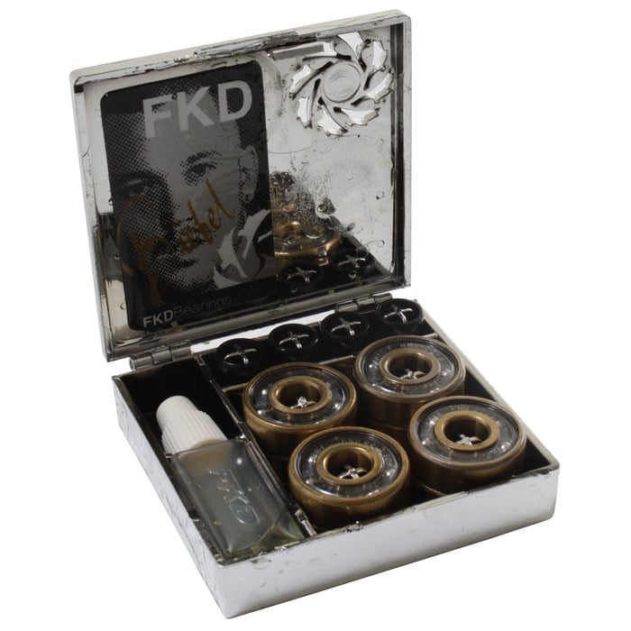 FKD Pro Gold Signature Series Skateboard Bearings: If you demand the same high performance that the pros demand then the new FKD Pro Gold Signature Series Skateboard Bearings are here for the taking. Featuring top of the line construction – gold outer race, clear outer shield and no inner shield – the FKD Pro Gold Signature Series Skateboard Bearings are true professional quality.