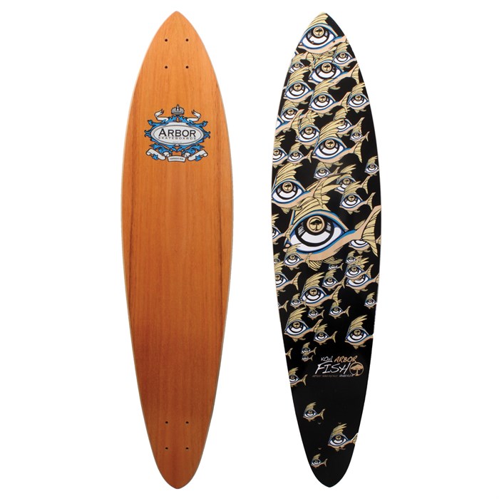 Arbor Fish Koa Longboard Deck: Arbor’s compact pin - the Arbor Fish Koa Longboard was designed with a hyper-extended wheelbase, timeless teardrop shape, and concave profile to provide both carve and downhill function.