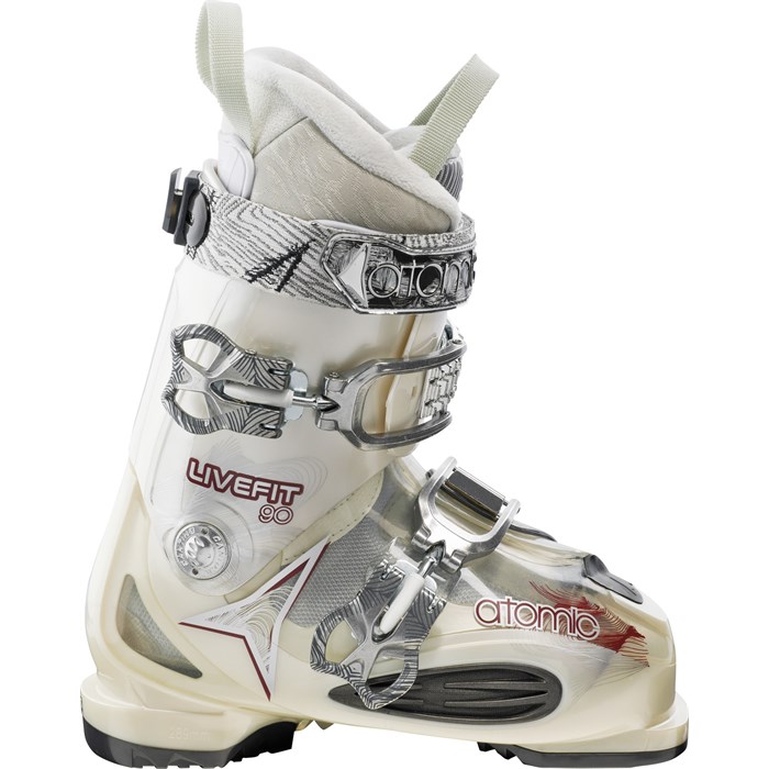 Atomic LF 90 Ski Boots - Women's 2013: The Atomic LF 90 Ski Boots are premium ski boots with innovative Live Fit technology that automatically adapts the fit to the anatomy of the female foot in real time. Elastic Live Fit zones snugly enclose the forefoot and ensure a perfect fit through every stage of a turn. The ASY Pro liner and hard flex ensure good power transmission to the ski while Mega buckles and a powerstrap provide firm support. The LF 90 is the perfect boot for sporty female skiers looking for maximum comfort and performance.