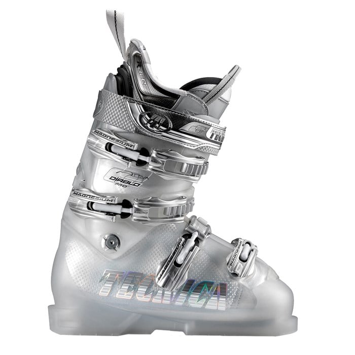 Flex rating: 100. This is Tecnica’s ladies race boot. Firm flex and tight fit does not mean uncomfortable, but it is not meant for the recreational skier.