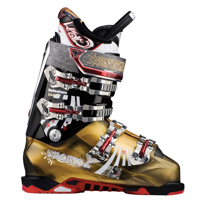 Tecnica Bodacious Ski Boots 2012: The all-new Tecnica Bodacious ski boot is designed to take on gnarly terrain where performance is critical at all times. This 98mm low volume boot will give you classic Tecnica performance, and blow you away with its light-weight and many tech options, like a shock absorbing boot board, specifically designed for getting after whatever terrain you can dream up and chase. Plus, interchangeable soles offer hiking capabilities with downhill performance so your skiing capabilities are endless.