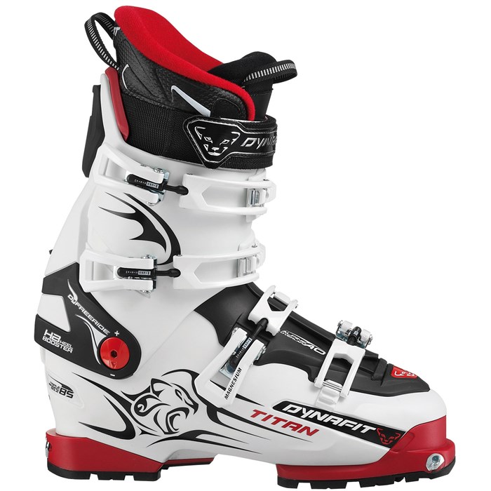 Dynafit Titan TF-X Alpine Touring Ski Boots 2011: Lightweight, yet powerful with a higher and stiffer rear spoiler. The Titan has no limits. You provide the adrenaline and imagination … Dynafit will provide the ultimate boot for the adventure. The Dynafit Titan TF-X Alpine Touring Ski Boots are an aggressive all-around hard-charging boot for skiers who want to earn their right to the furthest untracked lines, big drops and high speed descents. The Dynafit Titan is also the stiffest Freeride-Touring boot in the world and amazingly, the lightest too! The Titan - Climb what you aim to ski; because there is no “free ride” to the top for untracked lines and first descents.