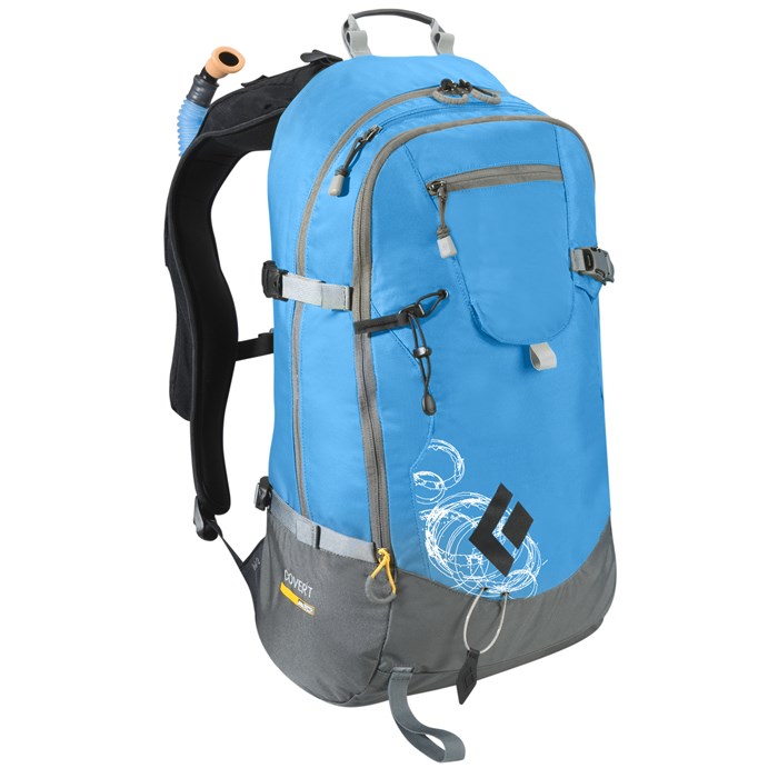 Black Diamond Covert Avalung S/M Pack 2012 - Optimized for day-long backcountry tours, the Black Diamond Covert stores everything you need for day-to-day off-piste travel and increases your chance of survival in the event of a slide thanks to its built-in AvaLung. The spacious interior organizes your avy tools and has enough room for lunch, layers and skins, while the fleece-lined goggle pouch and tuck-away helmet sling stash your accessories on the skin track. When you hit the ridgeline, the Black Diamond Covert's diagonal ski-carry cable secures your planks.