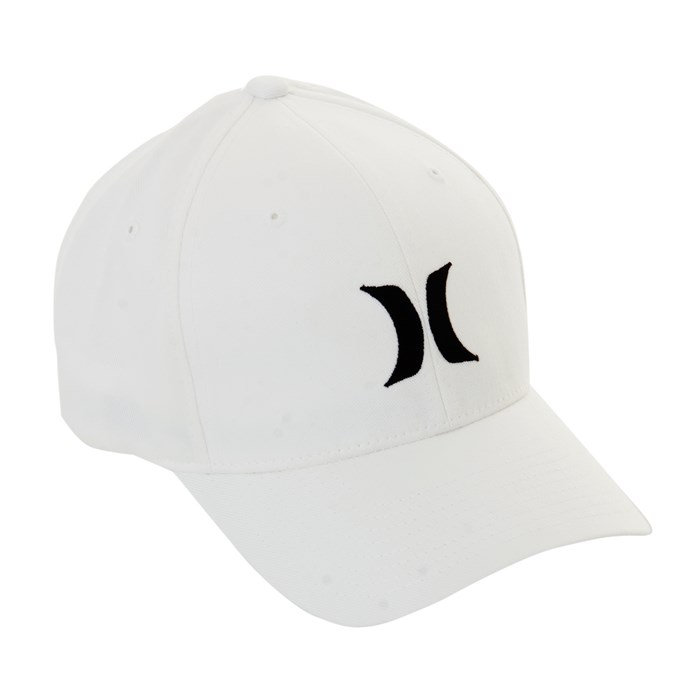 Hurley One & Only White Flexfit Hat: Solid white twill Flexfit hat with embroidered icon logo in multiple woven patterns.