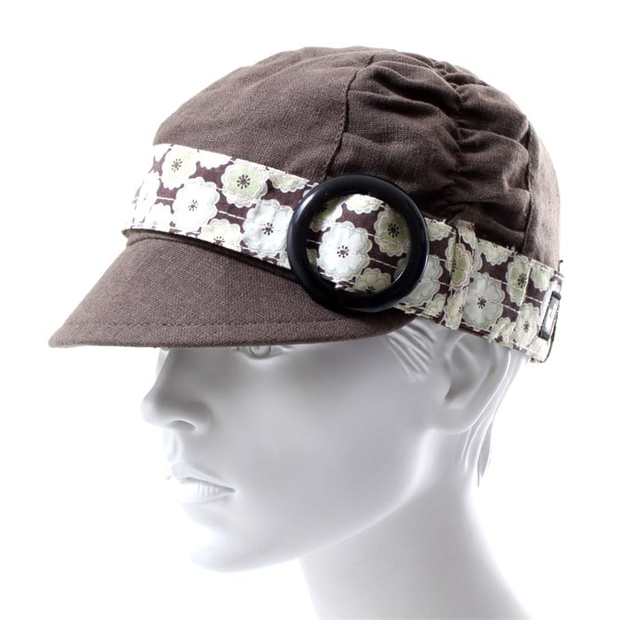 Goorin Brothers Forget Me Not Schoolboy Hat - Women's: A look to be remembered, the Goorin Brothers Forget Me Not Schoolboy Hat with ruched panel, pliable 2 ¼" brim, over-sized retro print band and chunky buckle fits comfortably with an elastic hatband inside with a floral print lining.