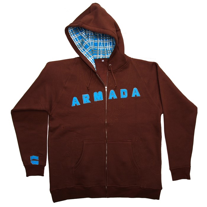 Armada Yee-haw Zip Hoodie is heavyweight 80/20 cotton fleece, full-zip front, and embroidery and stitching detail on body, screened hood lining, logo detailing on wrist.