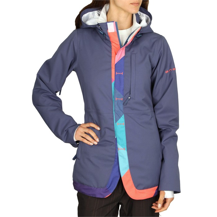 Anakie Alex Skinny Jacket - Women's: Anakie outerwear was designed with today’s female snowboarder in mind. The slim fitting Anakie Alex Skinny Jacket is loaded with style, but don’t let that fool you as this jacket packs way more than a sweet fit and stylish graphic. With 10k/10k waterproofing/breathability, Polyfil insulation, and every feature you could ask for in a women’s snowboarding jacket, the Anakie Alex Skinny Jacket is winning on all fronts.