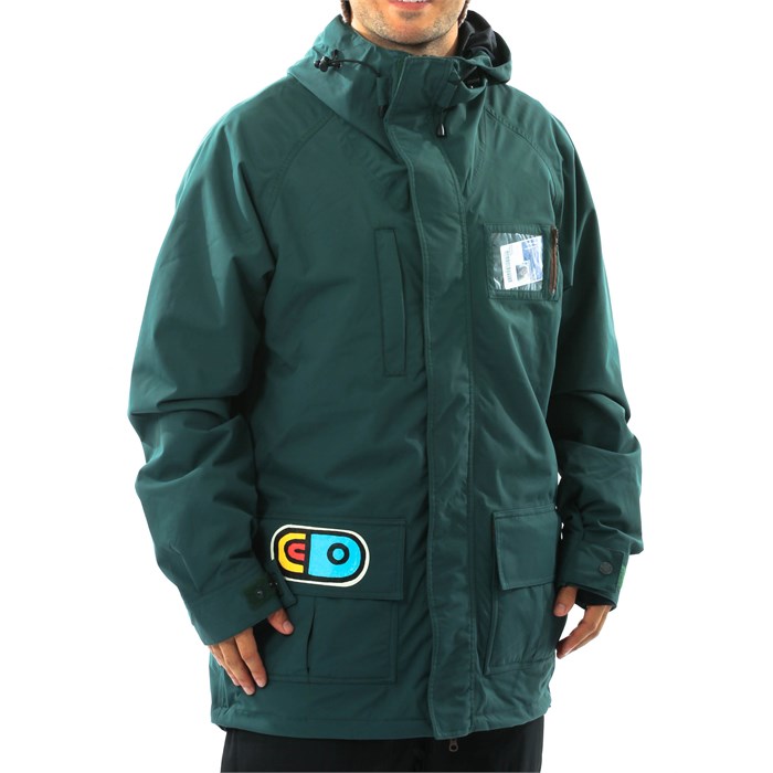 Airblaster The Parker Jacket: The Airblaster Parker Jacket is Travis Parkers own eco-friendly, custom design, complete with 2 pieces of his amazing artwork! Travis is still having fun creating, shredding with his friends, and being a positive part of the world. Which is why he’s created his jacket with a 100% recycled nylon outer shell for minimal eco-impact. There is a clear chest pocket for easy pass scanning, or for displaying your custom artwork of the day! The Airblaster Parker Jacket is based on one of Airblaster’s best designs ever, the Airblaster Parka. Travis wanted his version extra long, to protect him from slushy chairlift and cold butt. This is a great jacket from a great guy!