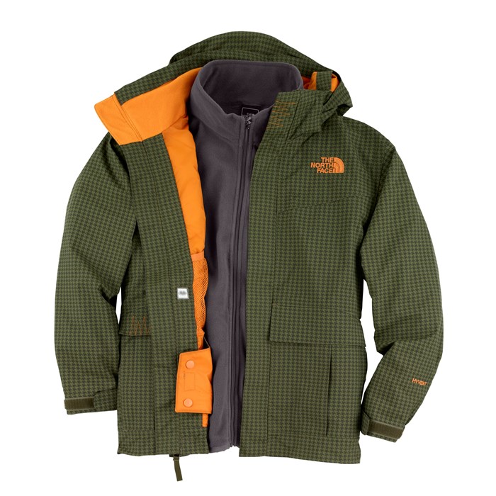 The North Face Houndstooth Belding Triclimate Jacket - Boy's: The North Face Houndstooth Belding Triclimate Jacket sports a stylish houndstooth pattern on the exterior shell of this three-in-one, all-purpose riding jacket. The multiple layers allow you to adjust to any day on the mountain and look good in more ways than one.
