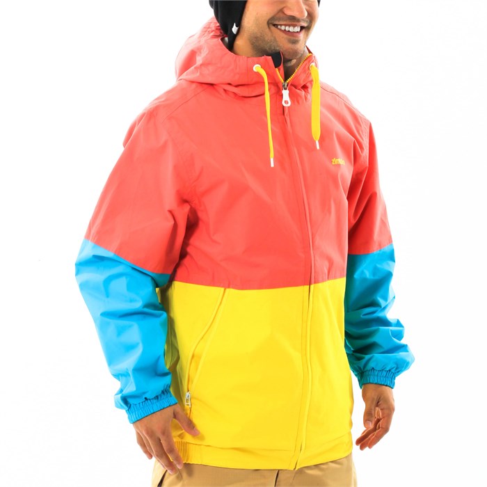 Zimtstern Hood Jacket: Elementary snowboard jacket reducing the essential to its essence. King of the LIM line – Less Is here Megamore! Waist gaiter? Redundant. Lycra cuffs: what for? This is the basic snowboard jacket, no need for more. 80’s style, ice cream truck colors, and a long cut fit based upon hoodies. The snowboard ambassador on urban streets. Or vice versa.