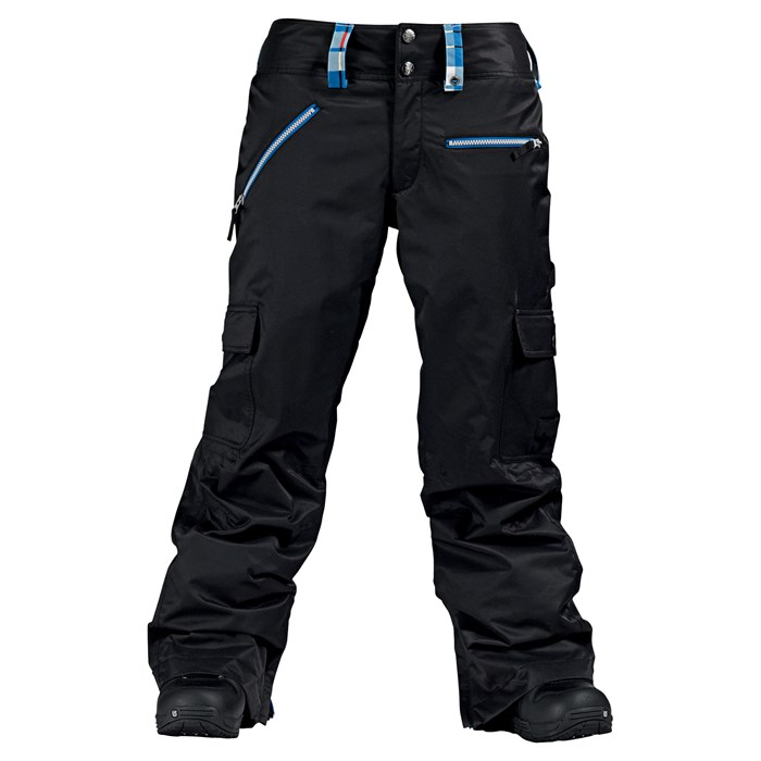 Burton Forage Pant - Women's: Feast on the mountain’s spoils in the Women’s Forage Pant from Burton. Dryride Durashell 2-layer coated fabric with Pierced Twill, along with fully taped seams keep the wet out while allowing your legs to breathe when they get working. Not enough to keep you cool? Unzip the mesh-lined inner thigh vents and dump that excess heat. Jacket to Pant interface with most Burton jackets means no more back-to-crack streams keeping you cold.