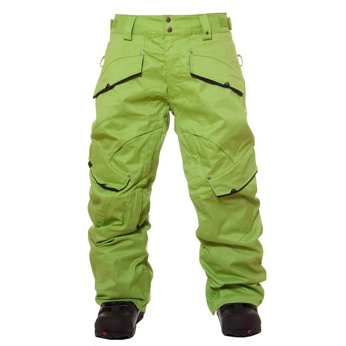 Vans Mylan Cargo Insulated Pant: Who invented cargo pants and why? Seriosuly, who needs that many pockets unless you’re carrying your wallet, cell phone, snacks, iPod, beverages and the most recent love letter from your girlfriend? Oh wait. They’re waterproof and breathable, too. So you can carry all that stuff while you’re snowboarding? Genius.