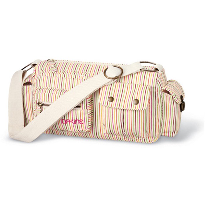 Dakine Shimmy Shoulder Bag - Women's: Shimmying is no longer reserved for wedding reception dances with your awkward extended family. Dakine is restoring Shimmy back to the public, just as the French Revolution sought to bring liberty back to the public. With far less bloodshed than those testy Francs, Dakine has won the public over with the Shimmy Shoulder Bag. The metal hardware makes the Shimmy sturdy as a lumberjack, while the cotton canvas makes it as soft as a rotted log. If you need to organize small items, the interior zippered pocket is your ticket to an orderly existence. Recognize the adjustable shoulder strap feature, which makes the Dakine Shimmy Shoulder Bag the most comfortable tote to tote. Feel free to shimmy through the Macarena or through a crowded bar with your Dakine Shimmy Shoulder Bag.