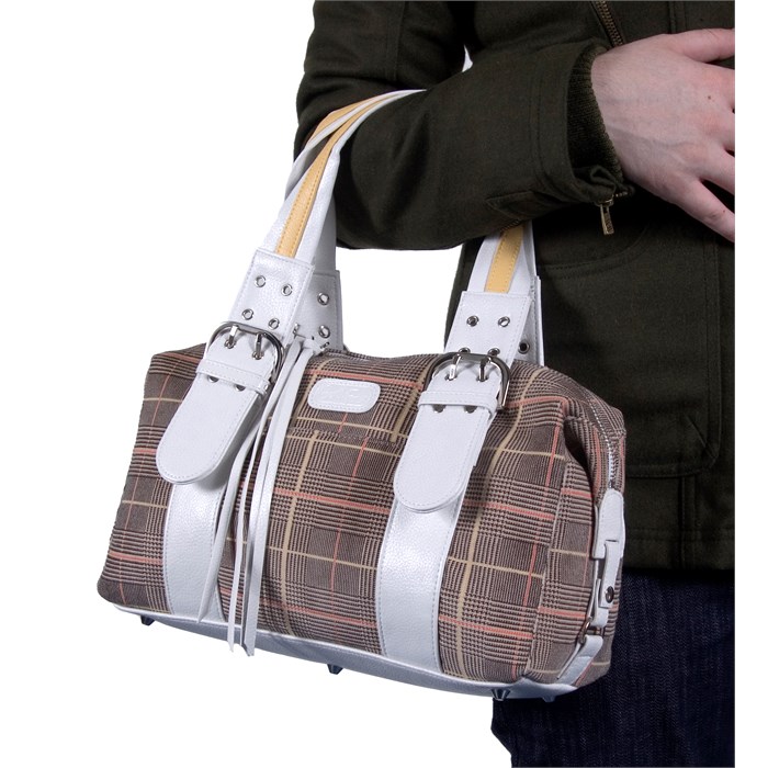 The Property Purse from Gentle Fawn is the perfect example of contrasting colors working well together. This multi colored tweed bag is accented nicely with white faux leather belt style handles, zipper pull and logo patch. A great size for everyday use, but big enough to take on a short weekend getaway.