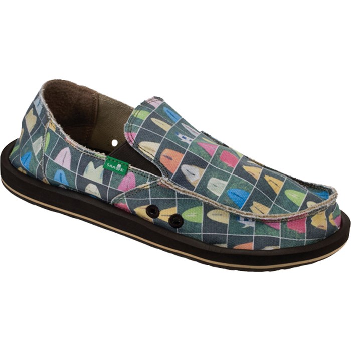 For superior support and comfort the Sanuk Donny Slip On Shoe features a super soft, high rebound, molded EVA footbed with AEGIS antimicrobial additive and a Happy U sole.