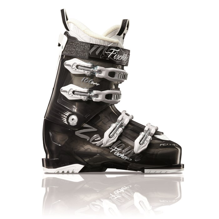 Fischer Soma Zephyr 100 Ski Boots - Women's 2012: Beyond amazing visual design, the Fischer Soma Zephyr 100 Ski Boots offer high-tech construction with outstanding performance requirements. The Zephyr 100 boots come fully loaded with High Insulation PE liners, Women Specific Fit, Rapid Slide System, and SOMA-TEC natural stance.