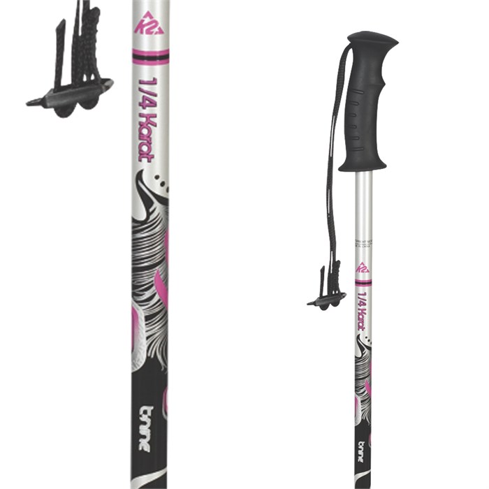 K2 1/4 Karat - Girl's Ski Poles: The K2 ¼ Karat Ski Poles come with durable aluminum, a comfortable smaller grip and a cute graphic to match. This girl’s pole is built with the same quality as the other Karat poles, only in a smaller, lighter weight size.