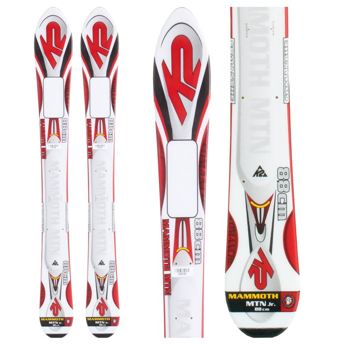 K2 Mammoth Jr Skis - Kids: Made exclusively for Mammoth Mountain, the K2 Mammoth Jr Skis are perfect for beginners and intermediates looking to progress to all-mountain terrain. The Mammoth Jr skis feature predrilled holes for bindings.