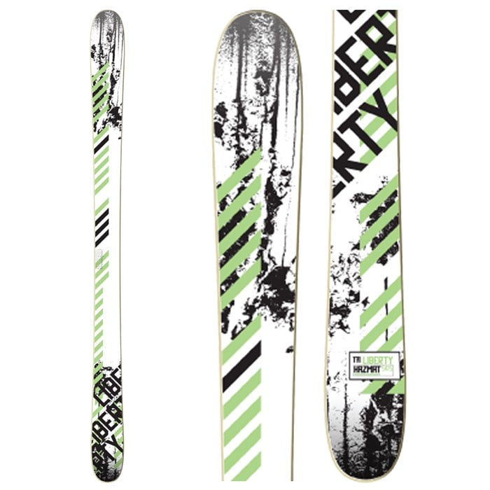 Liberty Hazmat Skis 2010: The Hazmat continues to be an all-mountain favorite for demanding riders everywhere. At 94mm underfoot, the 2010 Hazmat is the perfect tool to conquer the whole mountain, regardless of the conditions. It rips hardpack with ease, but has the float and backbone to attack powder, steep technical lines, or even lap the park. Featuring the Liberty Bamboo Core, 78 degree UHMW sidewalls, and the burliest edge available, the Hazmat is truly a one ski quiver. AT and telemark skiers also find the ski a great tool for long skins to steep descents.