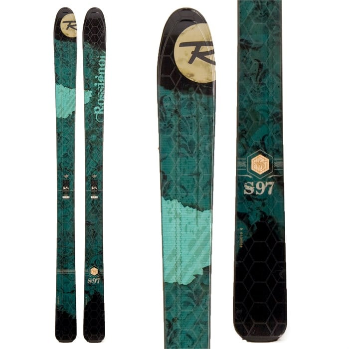 Rossignol S97 Freeride Skis 2011: The Rossignol S97 Freeride Skis are the apex of all-mountain skis, featuring AmpTek. Rossignol's unique camber profile. AmpTek Freeride combines traditional camber underfoot delivering power, energy and edge grip with an early rise tip and tail that dramatically improves the turn initiation and flotation in any condition. The Rossignol S97 Freeride Skis charge down the hill with the precision of ace skis, but has the user-friendly feel of freeride skis. With its 97mm waist, they glide through powder like a butterfly, yet bust through relentless crud with amazing ease. Bowls, glades, and frozen hard-pack are no match for the new generation of mid-waisted freeride skis. Graphic Inspired by Caia Koopman.