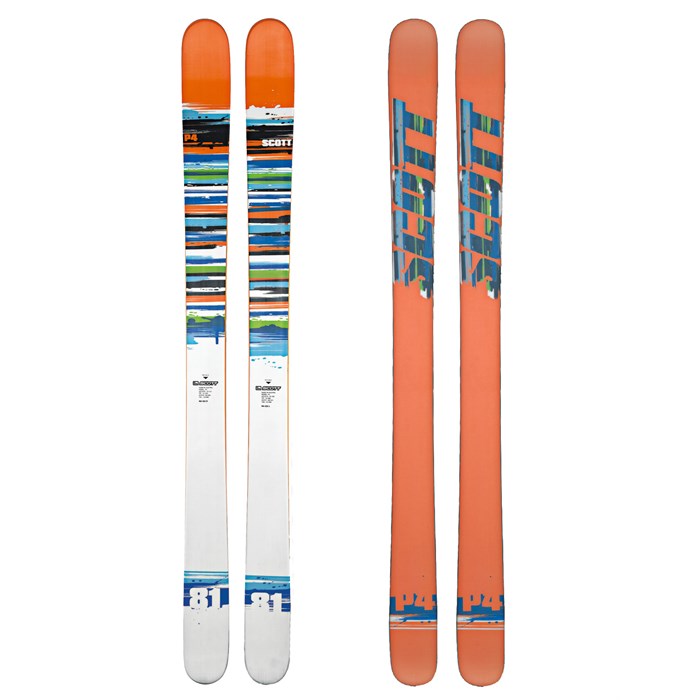 The Scott P4 Skis use a hardwood core and a titanal sandwich laminate to give the ski good stiffness and control.