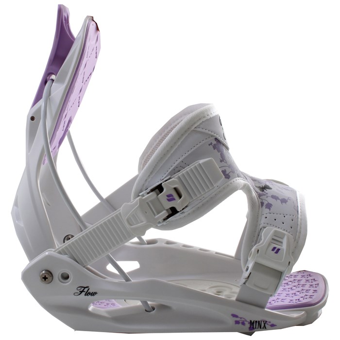 Flow Minx Snowboard Bindings - Women's - Demo 2008: Here’s a fresh, fun-inspired binding that’s ready to take your riding and fun to the next level. Flow’s Minx chassis is totally asymmetrical for ideal boot hold and energy transfer. Flow’s I-Flex strap brings top-level performance down to working-girl prices. This makes Flow’s Minx Snowboard Binding a fantastic value in a product that’s a big step above entry level technology, proving you don’t have to sacrifice style and function on the mountain to get a great deal.