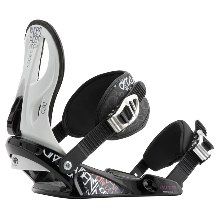 Raiden Deco Snowboard Bindings - Women's – Whether you’re hitting the groomers for a first time run or you’re winding through the trees on an exploratory mission, the Raiden Deco Snowboard Bindings are an ideal way to move when you want and how you want. The Premium Slim Cut ankle strap’s narrower profile improves flex and freedom of movement, helped out by the Precision Fit that’s got a 20% softer flex for women. So no matter where you are on the mountain or in terms of skills, these bindings will move with you.