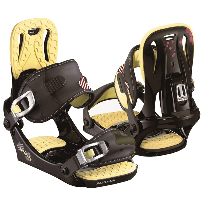 Salomon Antidote Snowboard Binding- Salomon’s classic woman’s binding–the Antidote provides relief with cushy EVA padding, a forgiving highback and a gender-specific shape. The streamlined design is lighter than any other women's binding, reducing foot fatigue and improving overall handling. Longer ratchets release easier even when wearing mittens, and the highback is wrapped in overflow padding to keep strong calves comfortable. Girly colors add vibrant and distinctive style.