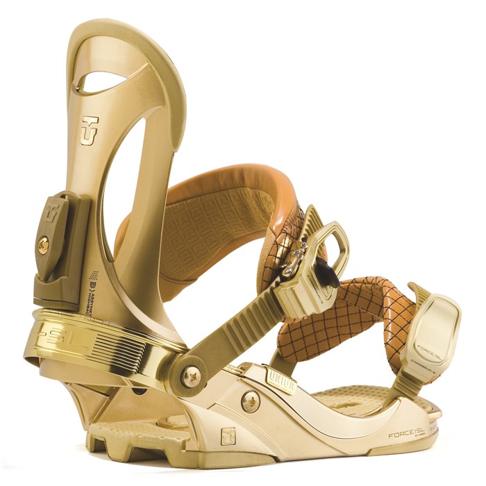 Union Force - SL Snowboard Bindings 2009: Performance and style - they’re meant to be together; the Union Force-SL Snowboard Bindings are proof. Built to maintain ultimate adjustability and durable performance, the Force-SL Bindings feature an Asymmetrical/Symmetrical highback for maximum tweakability, heelside control and amazing comfort. Machined parts cut unnecessary weight for a lightweight, responsive ride. Keeping it all wrapped up in a sleek design that won’t bite your steez, the Union Force-SL Snowboard Bindings feature clean, flowing lines and classy leather straps.