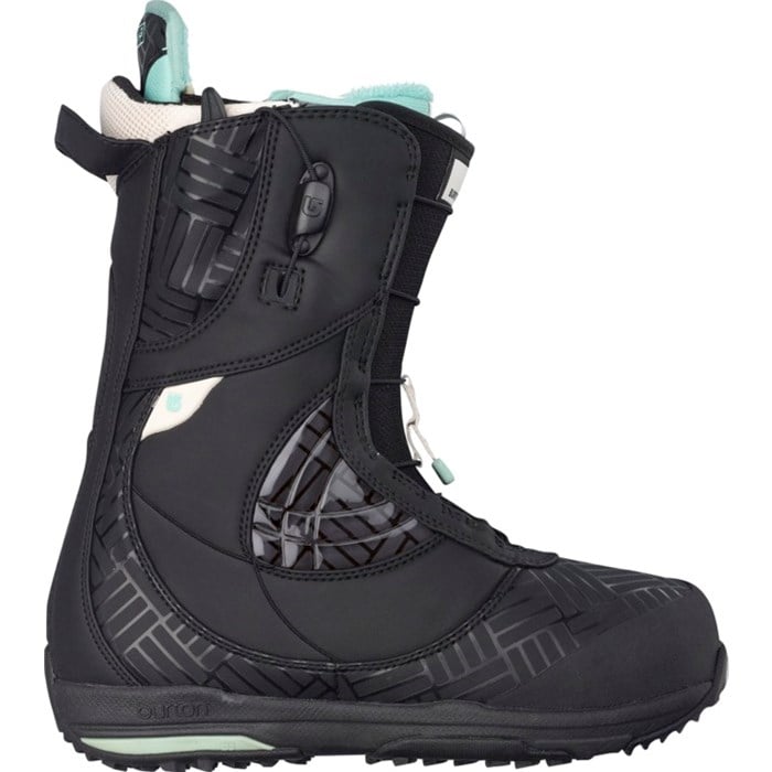 Burton Q Snowboard Boots - Women's 2012: Hike further, ride faster and push yourself with the Burton Q Snowboard Boots. Built for stability, support and drive, the Burton Q Boots feature eco-conscious materials, Firm Flex Thin Profile Molded Tongue, Level 2 Molded EVA Footbed with ESS Support Shank and Speed Zone™ lacing. Don’t let these features fool you, the Burton Q Snowboard Boots might be tough, but they also feature an inviting interior thanks to heat-ready liners, B3 Gel Cushioning and Plush Cuff. For the aggressive lady rider, the Burton Q Boots are a must.
